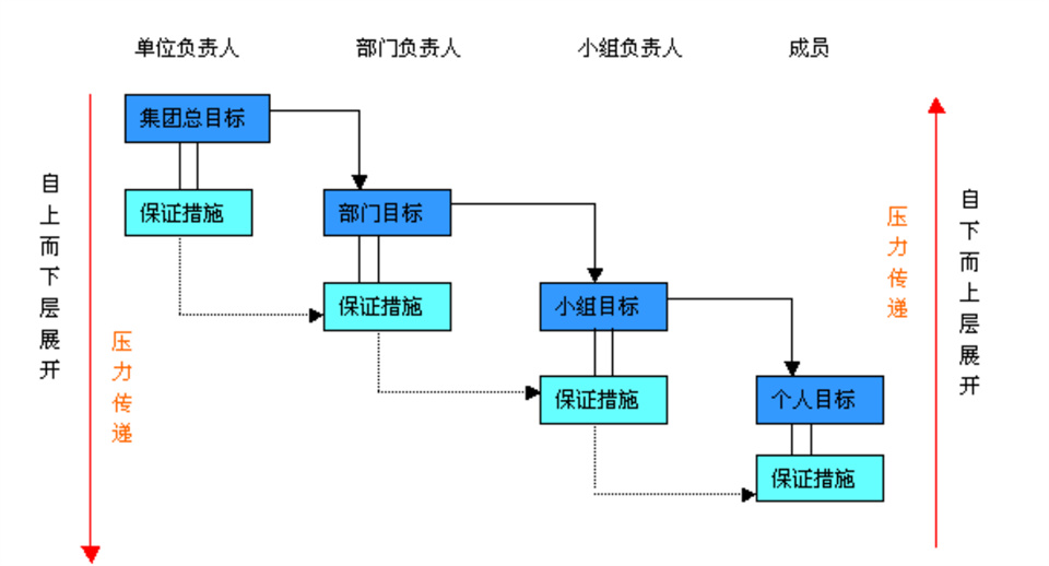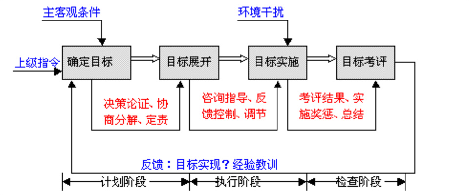 管理大师彼得·德鲁克(Peter F.Drucker)于1954年在其名著《管理实践》中最先提出“目标管理”(MBO,Management By Objectives),认为在目标明确的条件下,人们能够对自己负责。在确定组织目标后,通过一系列的设计和分解过程,将目标和责任落实到部门和个人,以便到最后督促组织目标实现和控制员工绩效的过程。它与传统管理方式相比有鲜明的特点:(1)员工参与管理(2)以自我管理为中心(3)强调自我评价(4)重视成果。MBO理论涵盖的目标制定、过程监控、评价反馈、结果运用正是现代绩效管理全流程的基础。