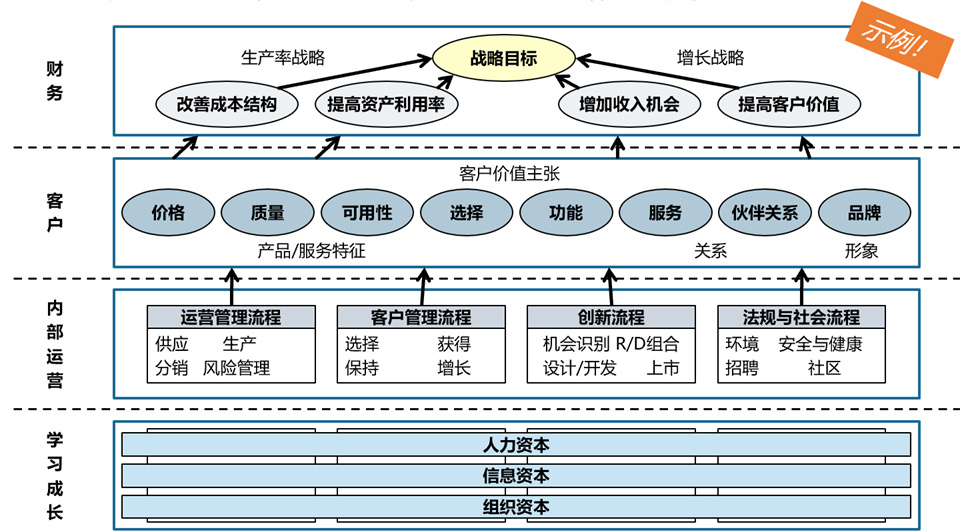 是把企业的战略目标分解为可操作的工作目标,明确各级部门的主要责任,并以此为基础,明确部门人员的业绩衡量指标。将战略目标分解成小目标,再找出与小目标相关的流程,提炼出流程中的重要可量化指标来进行考核的方法。本质上,KPI是确保企业层面的目标能够分解落实到每个员工、且能对每个员工的目标完成情况进行明确考核的工具。