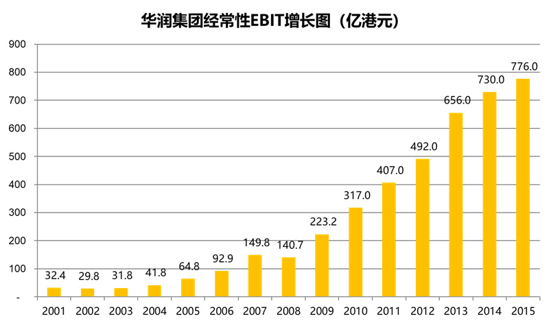 6S战略管理体系在实践中不断完善成熟,让华润集团从财务管控型企业真正进化成战略管控型企业。华润集团也在这一时期收获了巨大的成长,2015年的营业收入较2001年翻了16.8倍,EBIT翻了24倍。