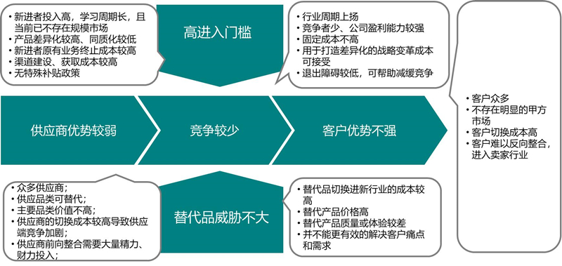 (5)渠道建设和获取成本会影响新进者的发展周期,也可能成为其衡量是否进入的要素;