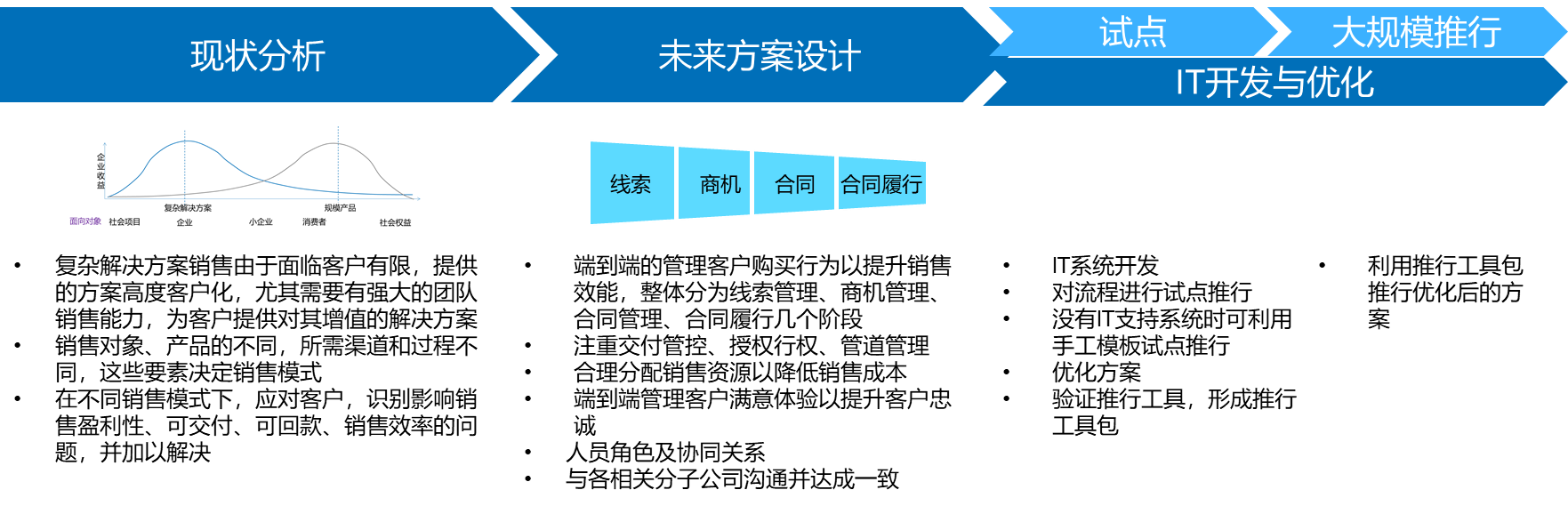 2. 就某一领域(如: 线索到回款/LTC等)进行流程诊断和优化。